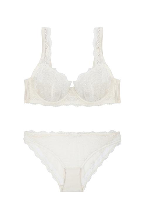 В качестве основного материала для белья автор выбрала уникальное французского производства кружево в легком оттенке под слоновую кость. Что дает возможность комбинировать в одном образе различные модели. В качестве сопроводительных аксессуаров к линии добавлены специальные пояски и, конечно же, свадебные подвязки. Главная «изюминка» представленной коллекции – оригинальная золотая вышивка на всех моделях.